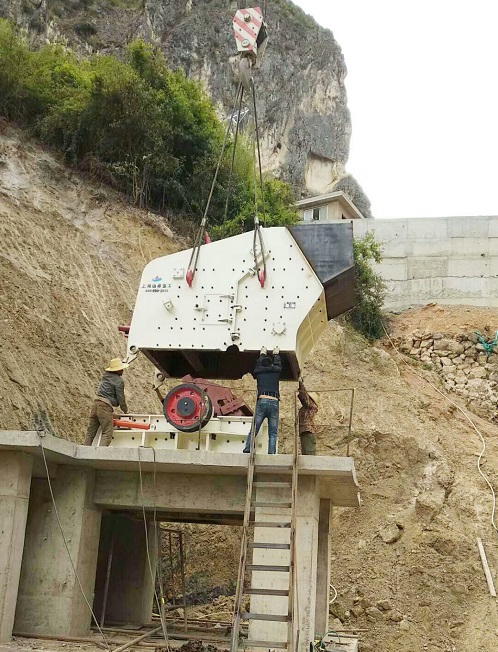 上圖所示為傈僳族碎石生產(chǎn)線吊裝現(xiàn)場,130噸大型吊車加20噸配重加挖掘機(jī)壓背才吊上去。